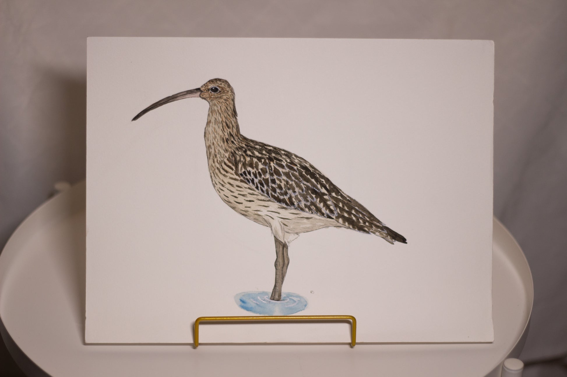Originale Aquarellmalerei eines großen Brachvogels, entstanden für das Wattenmeerposter. Auf hochwertigem Aquarellpapier von Canson Montval gemalt.