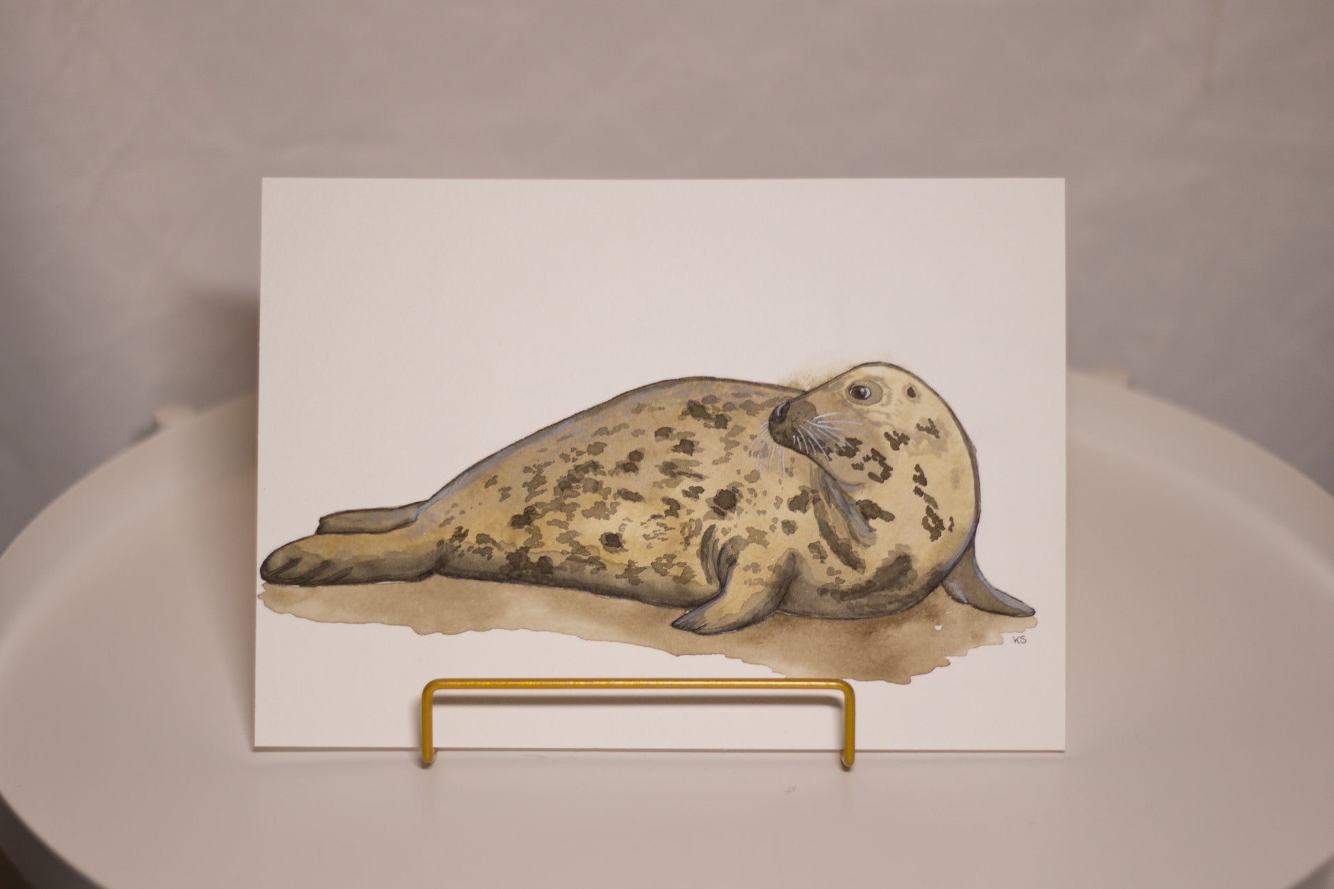 Originale Aquarellmalerei einer Kegelrobbe, entstanden für das Wattenmeerposter. Auf hochwertigem 300g/m2 Aquarellpapier von Canson Montval gemalt.