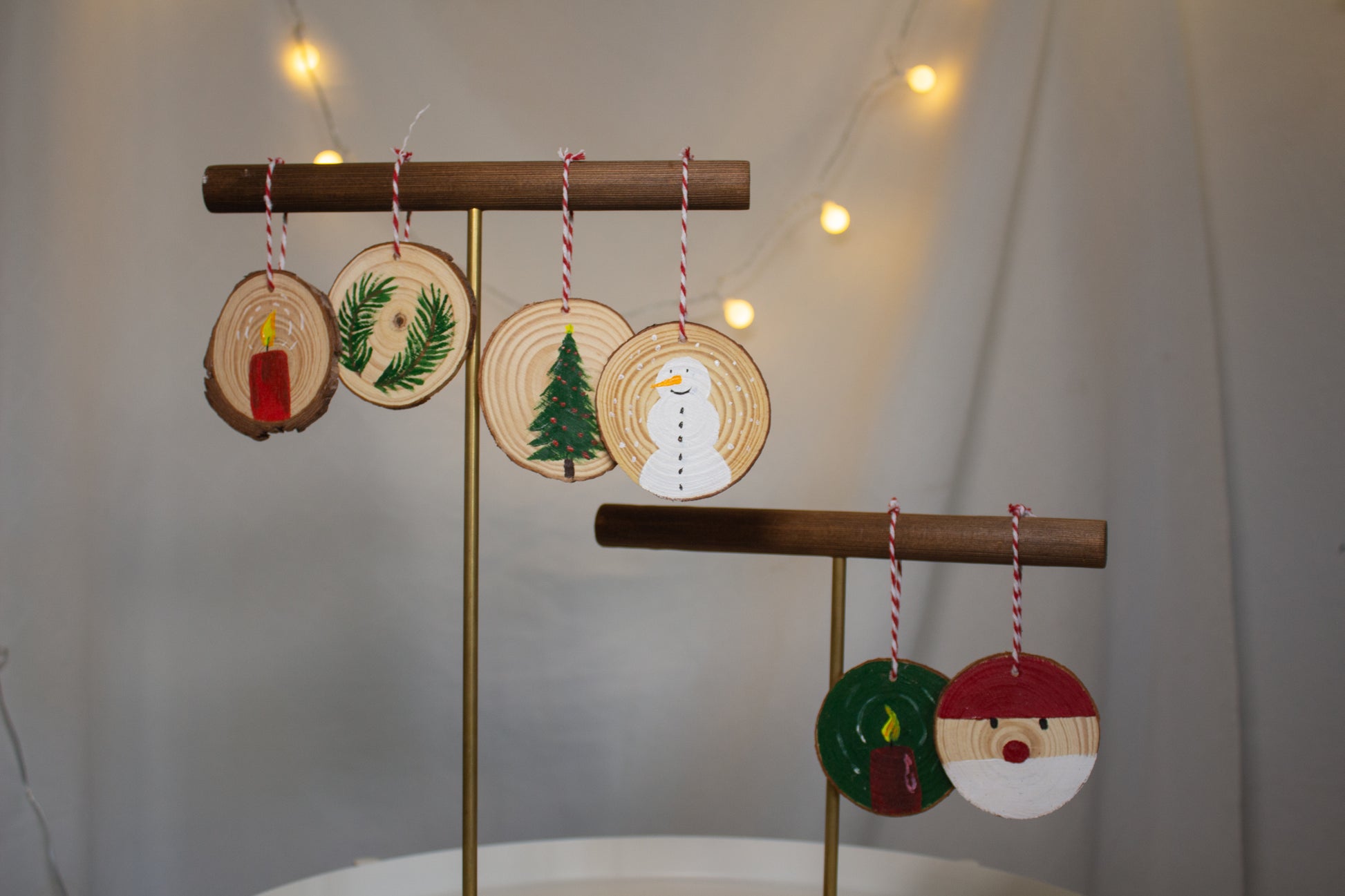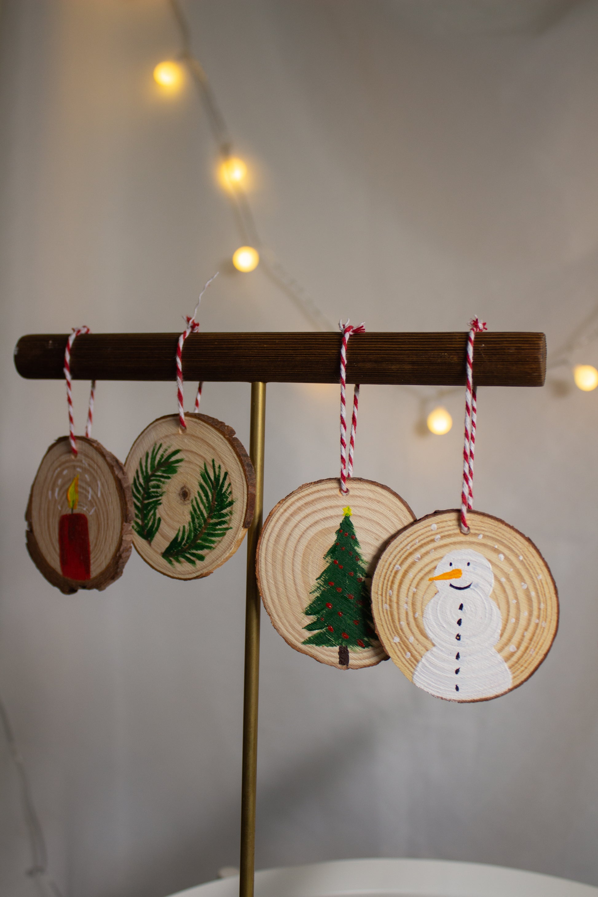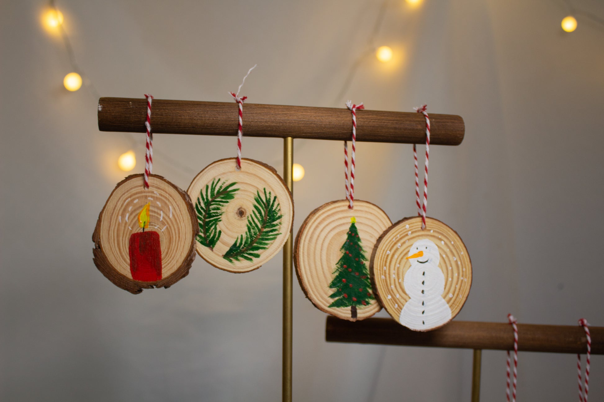Wunderschöne handgefertigter Tannenbaumschmuck/Deko für Weihnachten. Jede Holzscheibe wurde mit Acrylfarbe handbemalt und ist somit ein echter Hingucker.