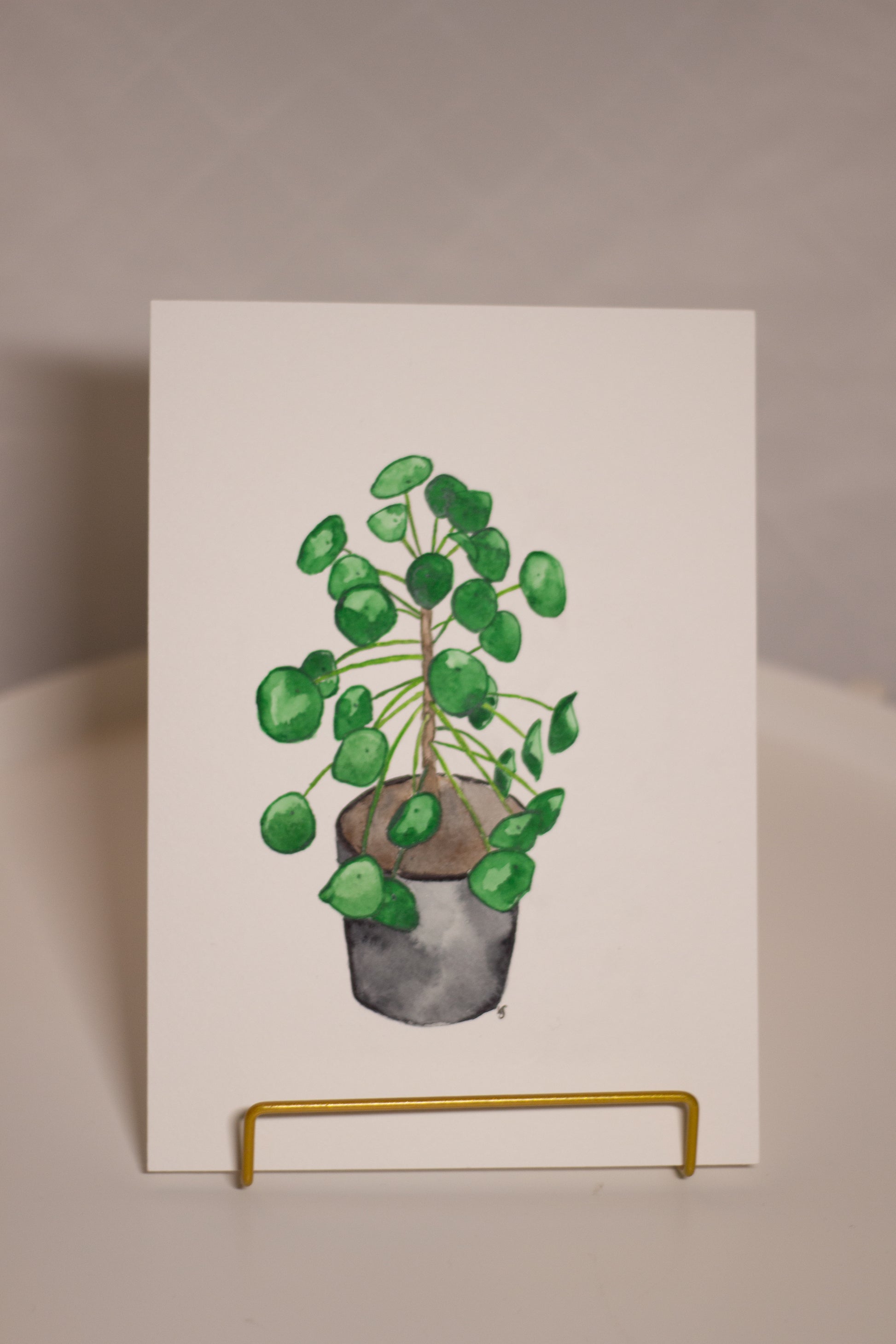 Originale Aquarellmalerei eines Pflanzenportraits von der Ufo aka Geldpflanze (Pilea). Auf hochwertigem 300g/m2 Aquarellpapier von Canson Montval gemalt.
