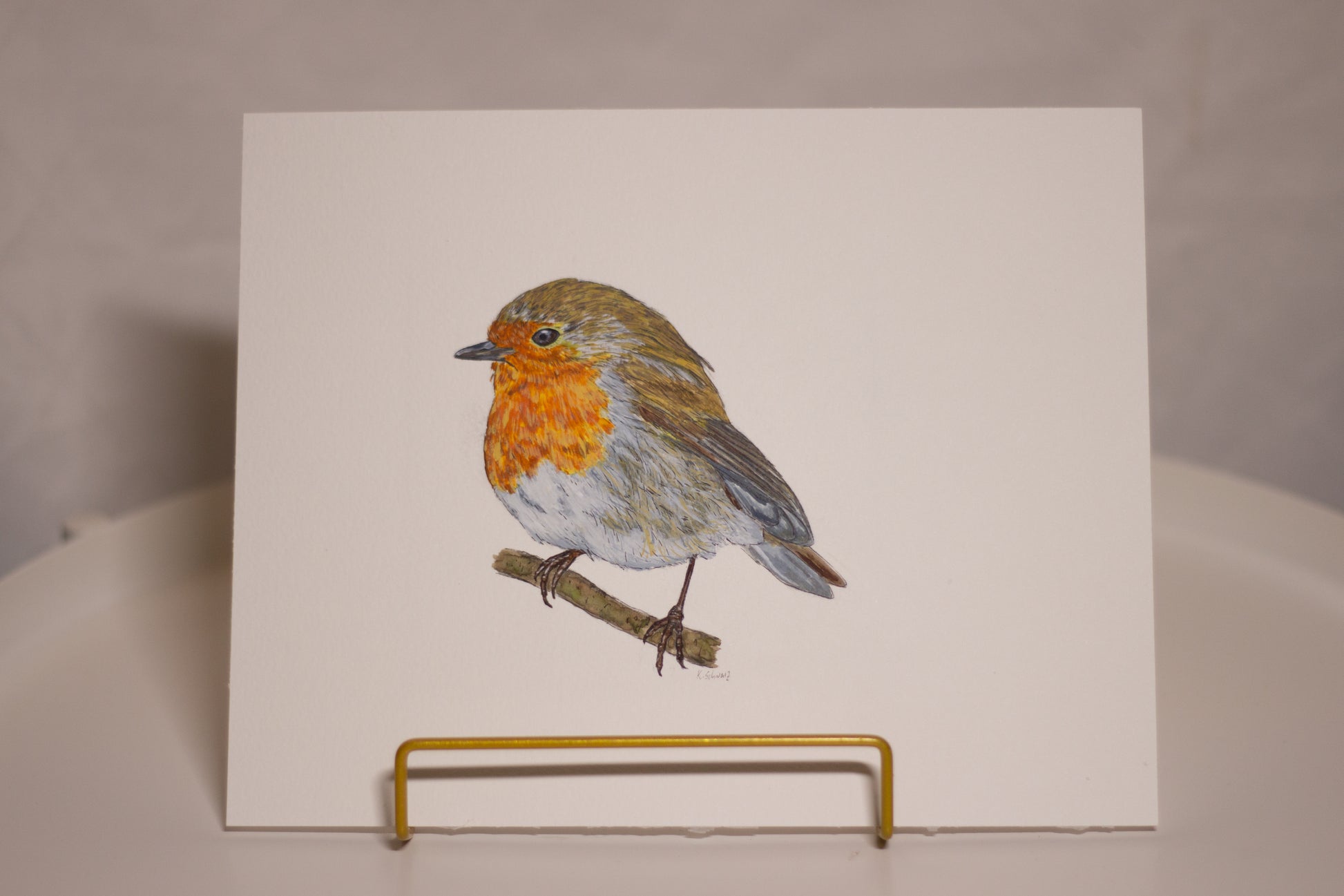 Originale Aquarellmalerei eines Rotkehlchens. Auf hochwertigem 300g/m2 Aquarellpapier von Canson Montval gemalt.