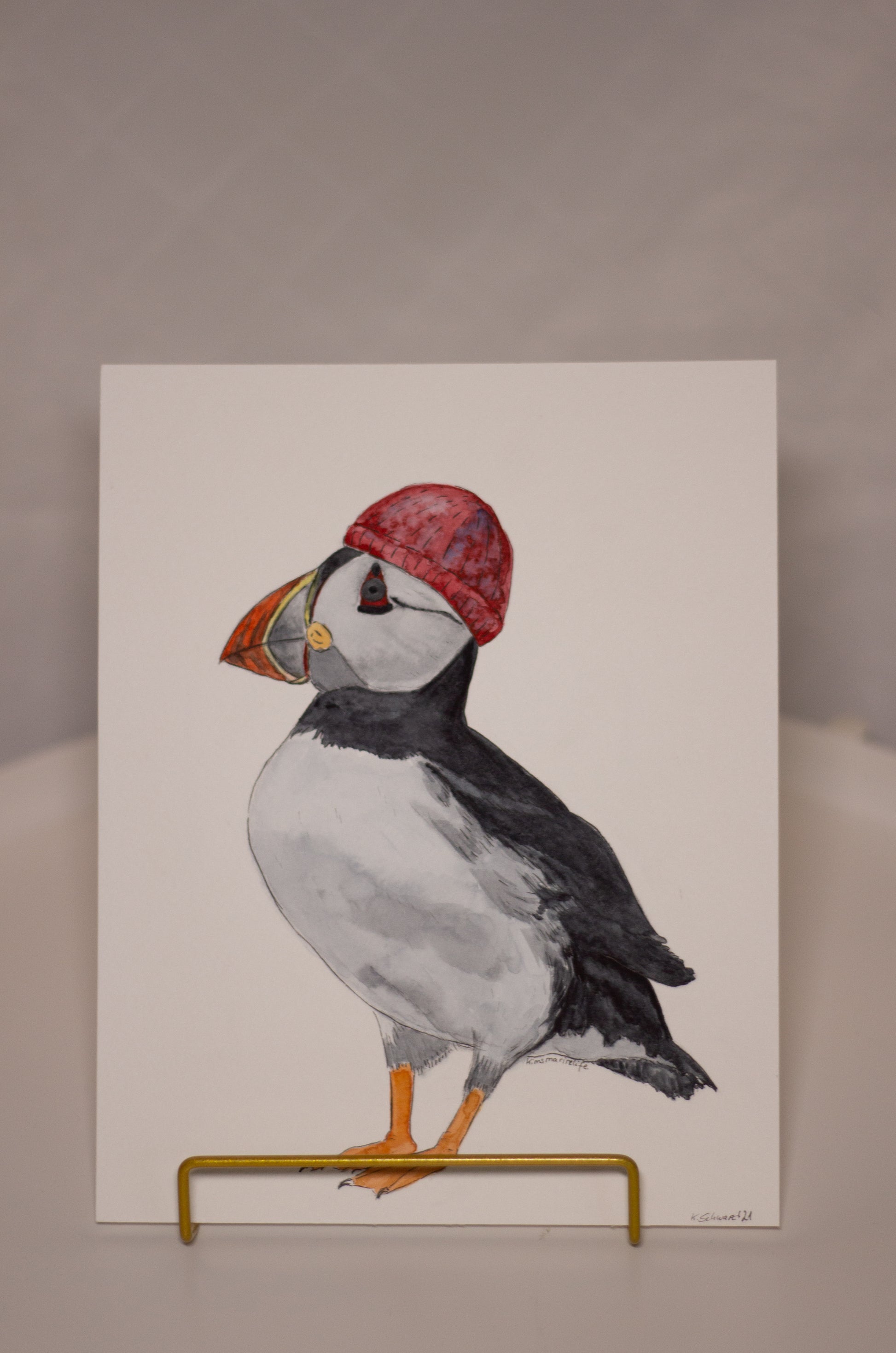 Originale Aquarellmalerei eines Papageientauchers mit Mütze. Auf hochwertigem 300g/m2 Aquarellpapier von Canson Montval gemalt.